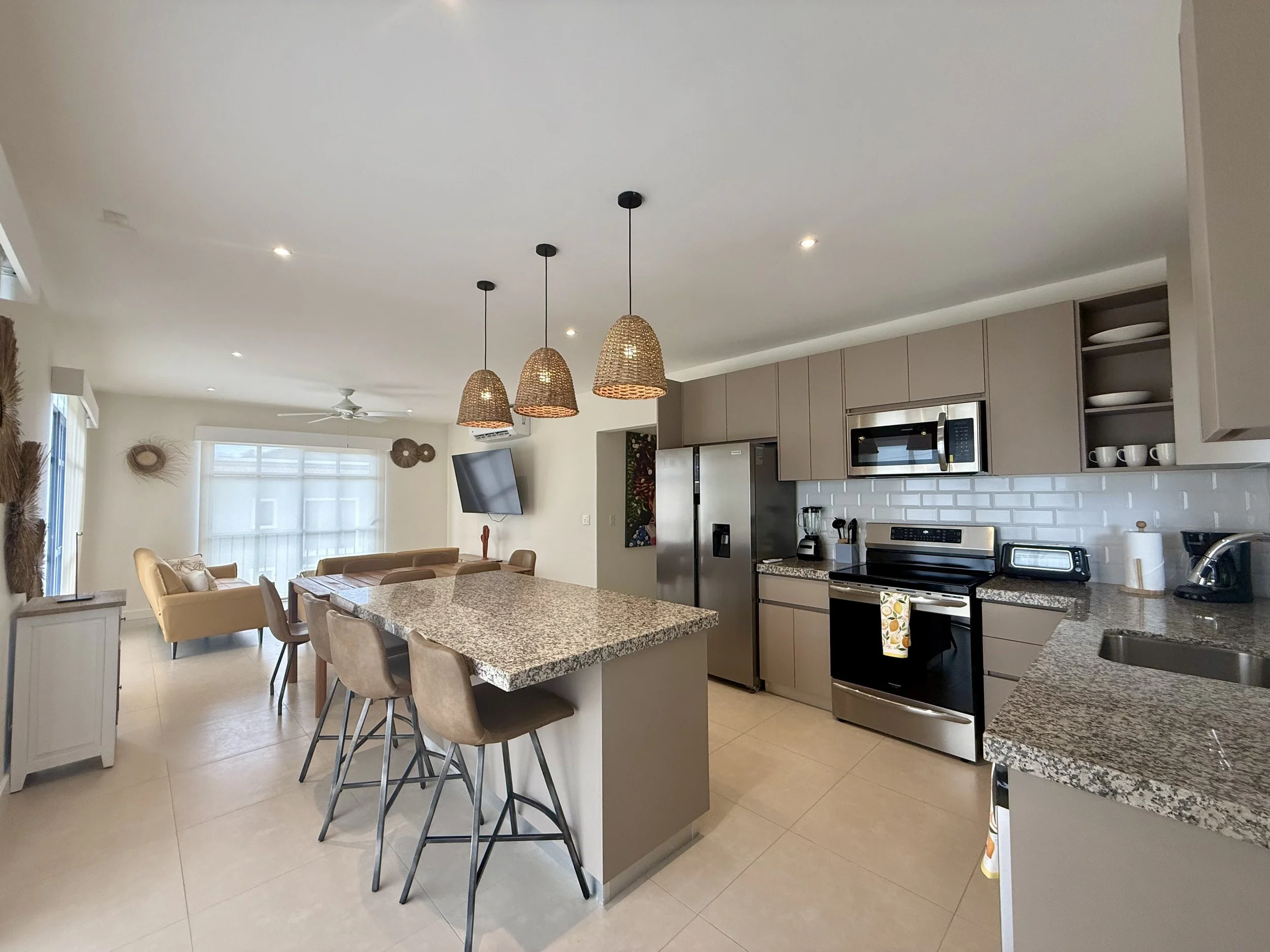 Open-concept kitchen and living room with high-end finishes