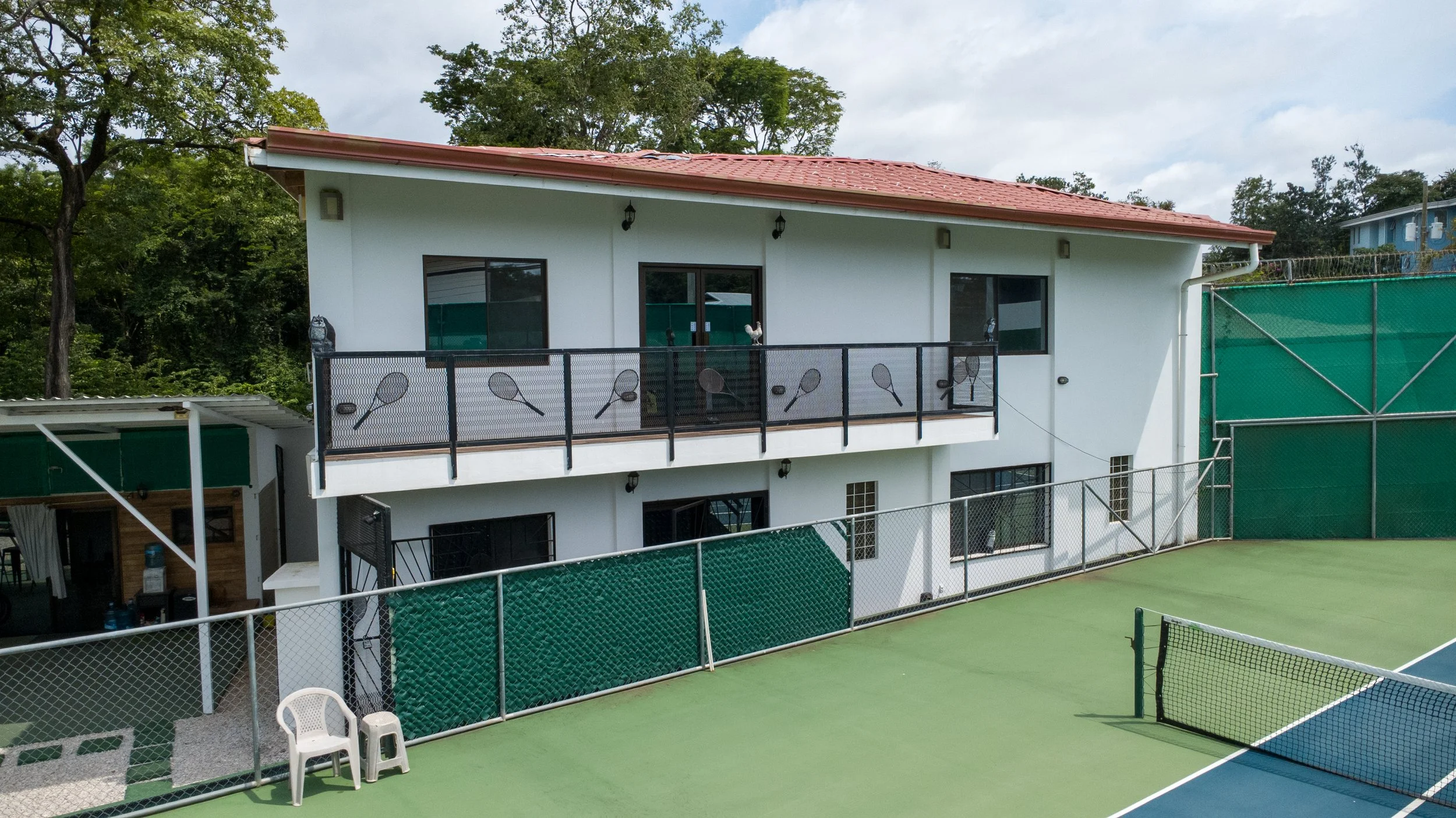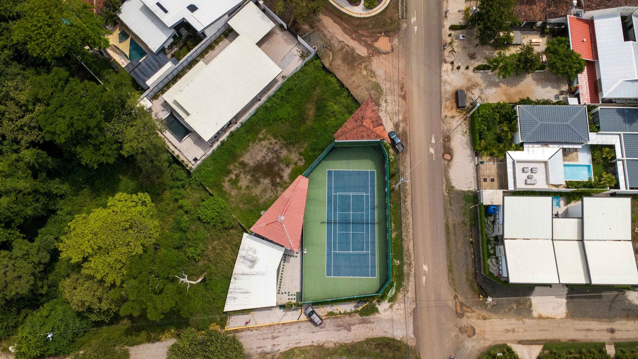 Thoughtfully positioned across two lots, the property offers flexibility for immediate use and future expansion. Existing structures include a two-story home with office spaces, three additional office units, and on-site recreational courts, creating an exceptional foundation for hospitality, wellness, co-working, or residential conversion.